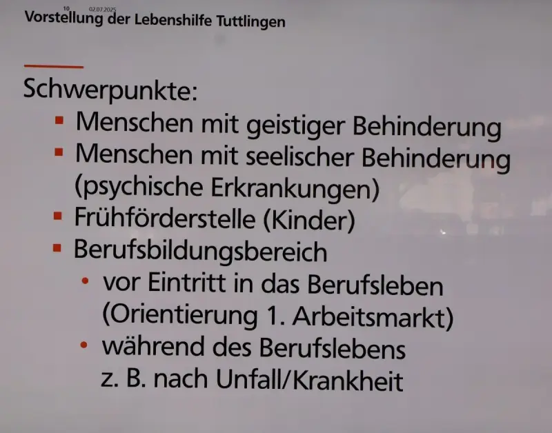 Mit 220 qualifizierten Mitarbeitern setzen der Verein und die dazugehörige gemeinnützige GmbH diese Aufgaben und Projekte in vielen verschiedenen Gebäuden an unterschiedlichen Standorten um. Auf dem Areal der Lebenshilfe mit Wäscherei, Werkstatt und Wohnheimen, der Donauwerkstatt in der Stadtmitte Tuttlingens, dem TuWerk im Gewerbe Ludwigstal oder einem weiteren Wohnheim in Spaichingen: Rund 400 Menschen mit Beeinträchtigung – geistig, körperlich oder seelisch – finden bei der Lebenshilfe Förderung, Arbeit und Wohnung, 150 davon Kinder. Weitere 150 werden betreut, nicht nur von den Festangestellten, sondern auch von 88 ehrenamtlichen Mitarbeitern. Dabei setzt der Verein auf unterschiedliche Konzepte wie interdisziplinäre Frühförderung, Seniorenbetreuung, Pflege und dem besonderen Projekt Musiklusion, barrierefreiem Musizieren. In den verschiedenen Werkstätten werden Aufträge von Firmen ausgeführt, egal ob in der Produktion an CNC-Maschinen (zum Beipsiel für die Medizintechnik) oder im Dienstleistungsbereich (wie das Verpacken von Geschenken, Briefen etc.).