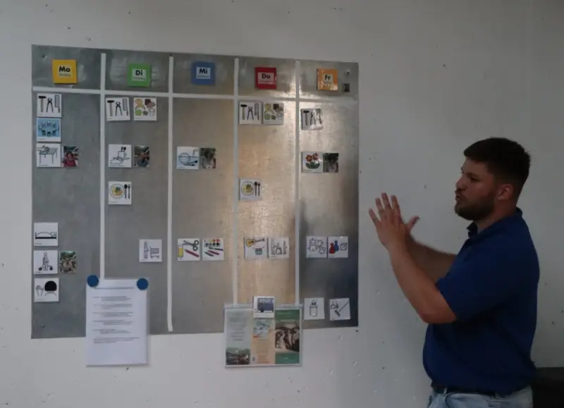 Bevor es für die verschiedenen Gruppen zum Besichtigungs-Rundgang des Neubaus und der angrenzenden Werkstatt-Räume ging, erhielten die Besucher vorab von Gastgeber Frank-Karsten Willer einige Informationen zu Einrichtung, Aufgaben und Zielen der Lebenshilfe. Der 1969 gegründete Verein möchte Menschen mit Beeinträchtigung fördern und ihnen die Möglichkeiten zum Arbeiten und Wohnen bieten. Denn: „Denn wir wollen ihnen die bestmögliche Teilhabe am Leben in unserer Gesellschaft mit Freude, Würde und in Selbstbestimmung ermöglichen“, erklärte er.