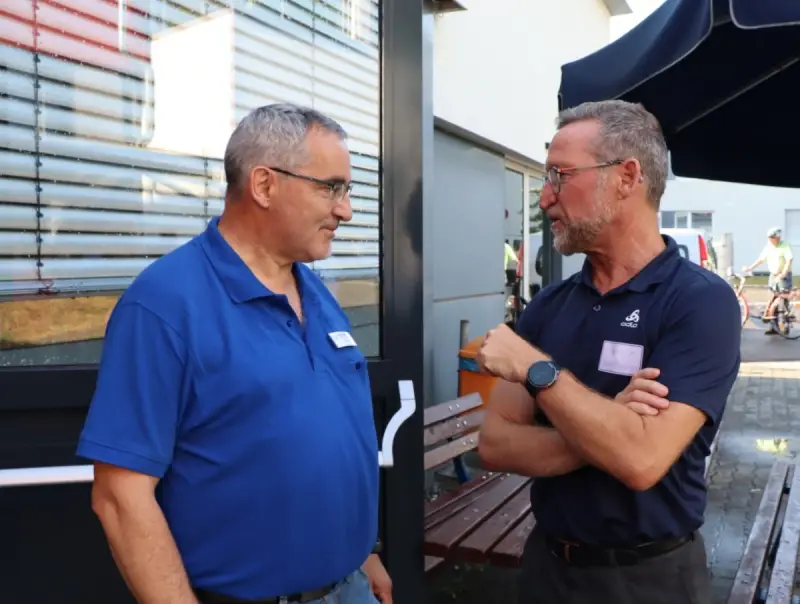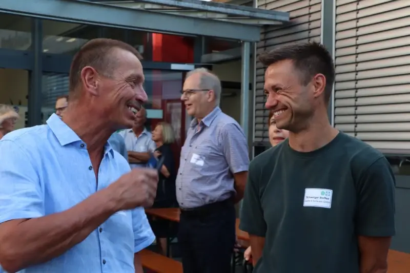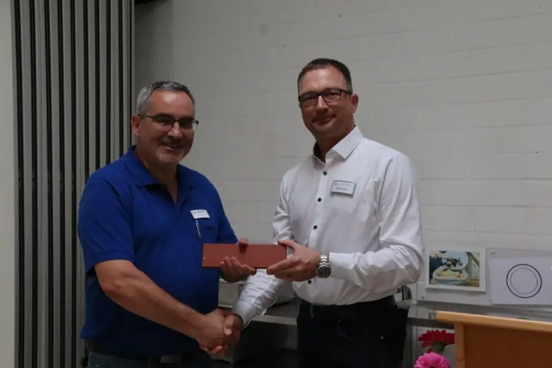Ermöglicht wurde der knapp 18 Millionen teure Neubau vor allem durch Spenden – nicht zuletzt der Hermle-Stiftung und anderer Unternehmen, aber auch durch kleinere Spenden, die in Form von Spendensteinen zusammenkamen und noch kommen. Daher gab es von PROTUT-Vorstand Holger Huber für Gastgeber Frank-Karsten Willer auch einen solchen Spendenstein als Gastgeschenk.