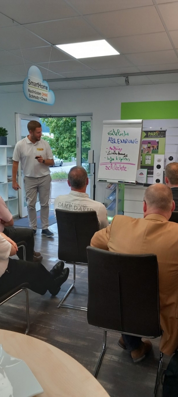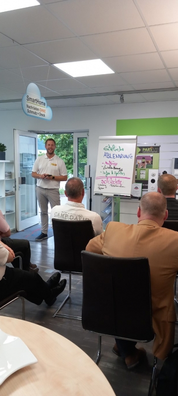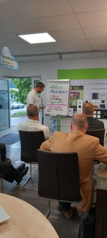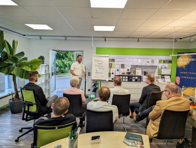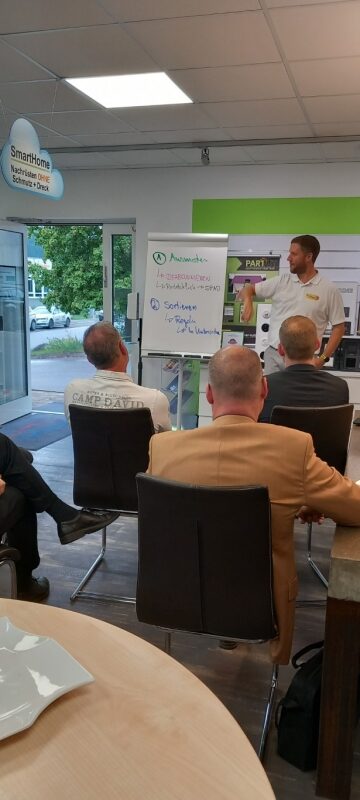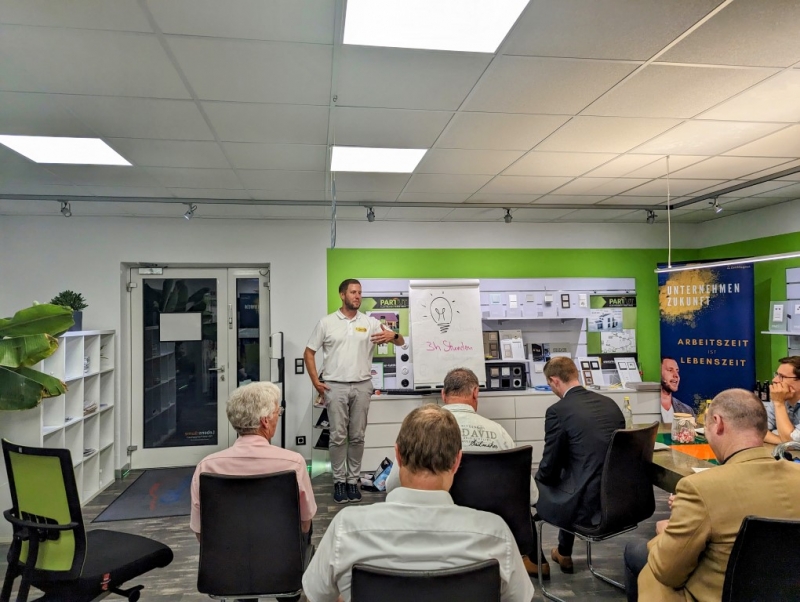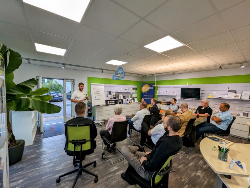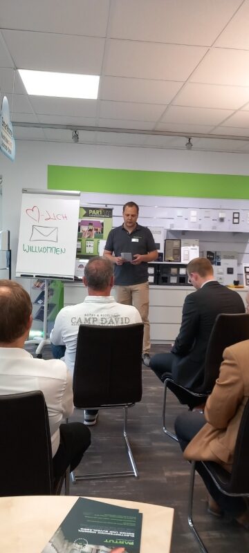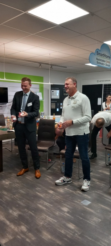 Zum Abschluss des inspirierenden Seminars bedankte sich Dominik Schmidt herzlich bei Andreas Müller für die wertvollen Einblicke in effizientes Zeitmanagement. Als Zeichen der Anerkennung überreichte er ihm ein kleines Dankeschön im Namen von PROTUT. Die Geste wurde mit Applaus von den Anwesenden begleitet. Anschließend lud Dominik Schmidt alle Teilnehmer ein, sich bei einem geselligen Get-together bei Häppchen und Getränken auszutauschen. Dies bot den Teilnehmern die Gelegenheit, sich weiter über das Thema auszutauschen und neue Kontakte zu knüpfen. Die angenehme Atmosphäre rundete den informativen und unterhaltsamen Abend ab.