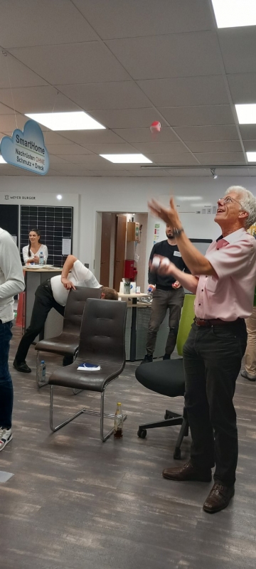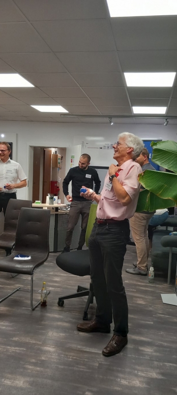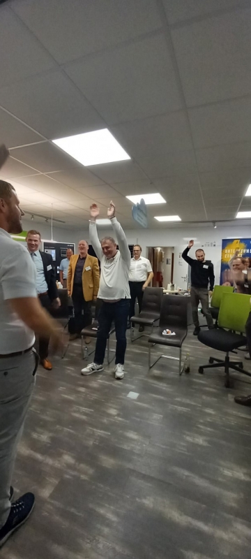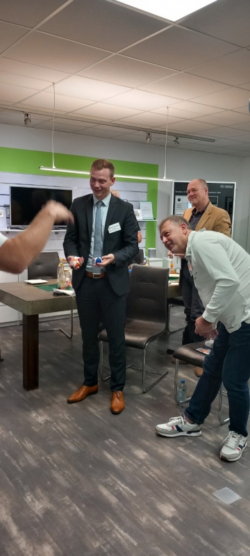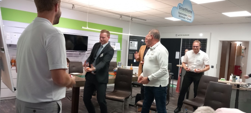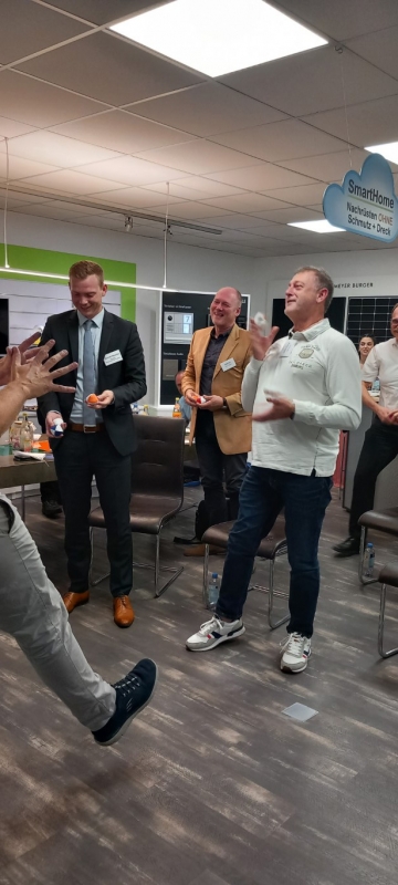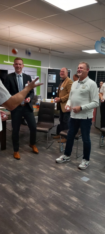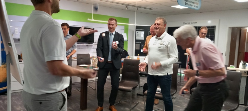 Zum Abschluss der Veranstaltung teilte Andreas Müller einen hilfreichen Tipp, wie man nach anstrengenden Telefonaten oder komplexen Aufgaben schnell neue Energie tanken kann. Jeder Teilnehmer erhielt Jonglierbälle und wurde ermutigt, mit ihnen nach anstrengenden Aufgaben zu jonglieren. Dies erwies sich als unterhaltsam Möglichkeit, die Konzentration zu steigern und Stress abzubauen.